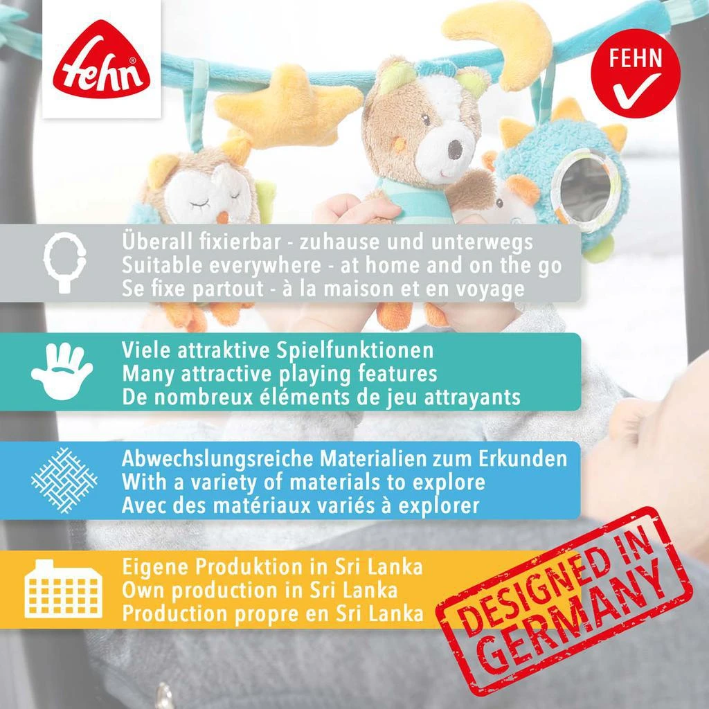 Fehn je německá společnost specializující se na výrobu vysoce kvalitních hraček a doplňků pro kojence a batolata. Od svého založení v roce 1949 se zaměřuje na inovativní produkty, které podporují vývoj dítěte a splňují nejvyšší standardy kvality a bezpečnosti. Sortiment společnosti Fehn zahrnuje širokou škálu produktů, jako jsou hudební kolotoče, 3D deky, aktivity hračky, plyšové hračky, muchláčky, látkové knížky, chrastítka, spirály, hračky do vody a mnoho dalších. Tyto výrobky jsou navrženy s důrazem na detail a vyrobeny z bezpečných materiálů, aby nejen bavily, ale také podporovaly motorický, smyslový a kognitivní rozvoj dítěte.