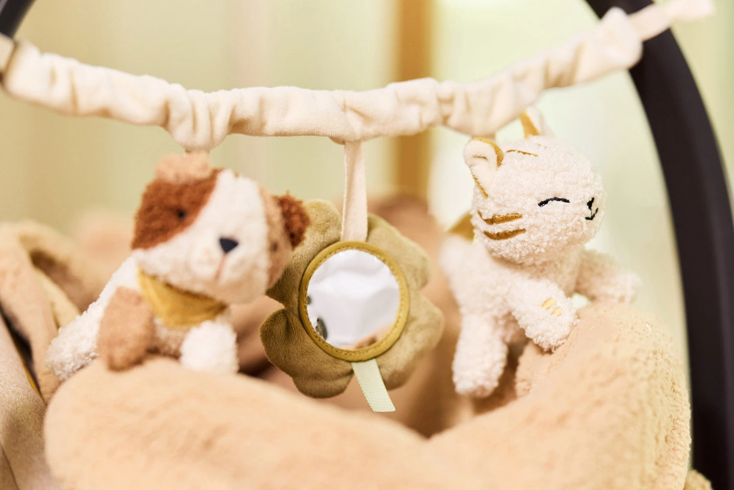 Řetěz s hračkami snadno připevníte ke kočárku i autosedačce díky vázacím šňůrkám.Složení: polyester, bavlnaMožno prát v ruce.