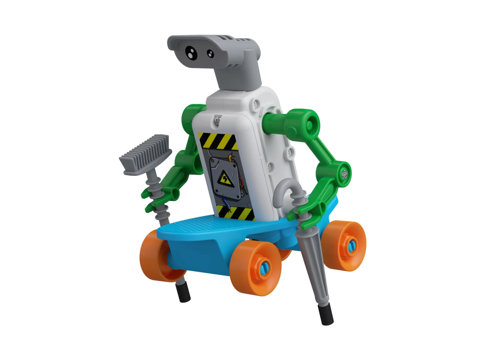 Obsahuje dílky ke složení robota, nálepky. Český návod ke stáhnutí v digitální podobě-QR kód na krabici a v návodu.