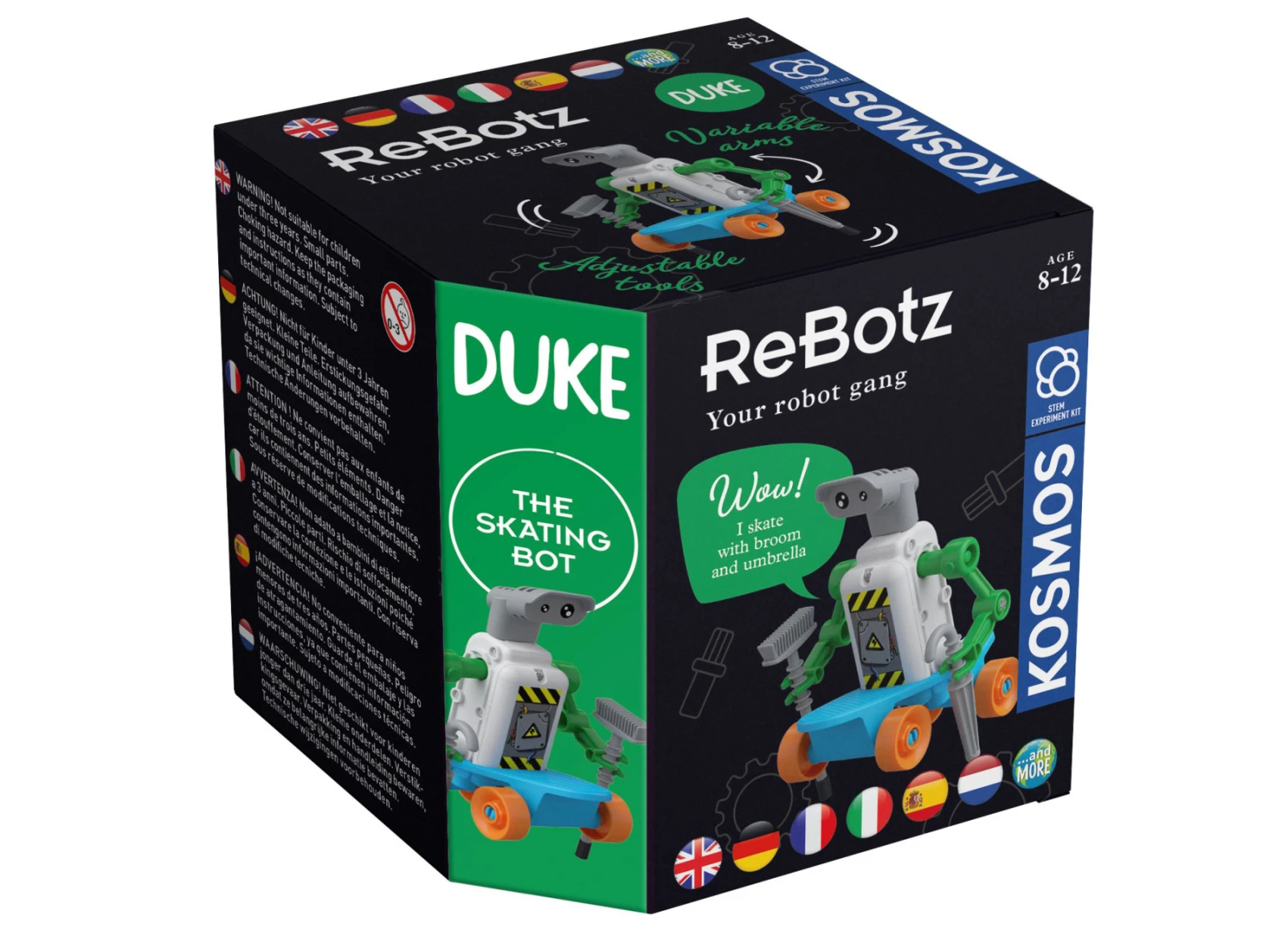 Robot Duke jezdící Kosmos je odvážný vesmírný dobrodruh, který s elegancí a odhodláním brázdí nekonečné dálky, objevuje nové světy a inspiruje každého, kdo se s ním vydá na cestu mezi hvězdy.