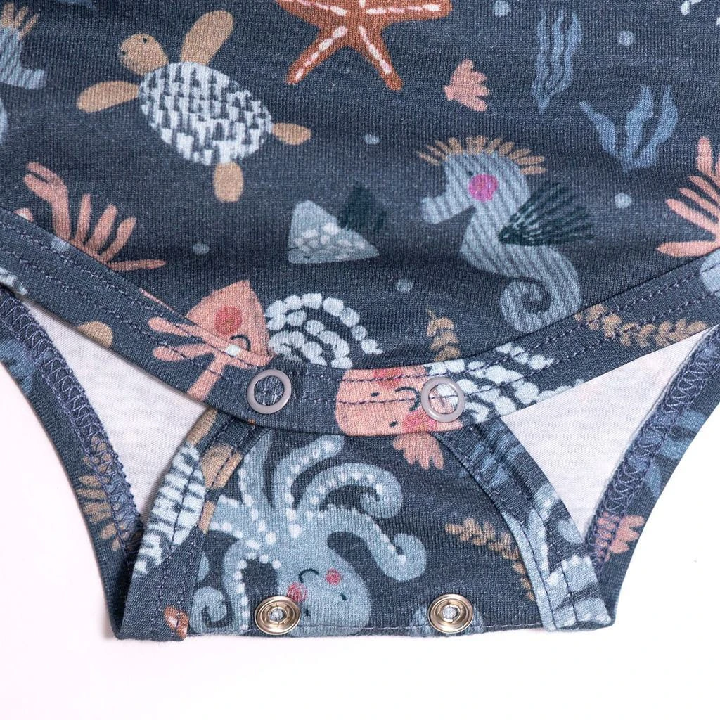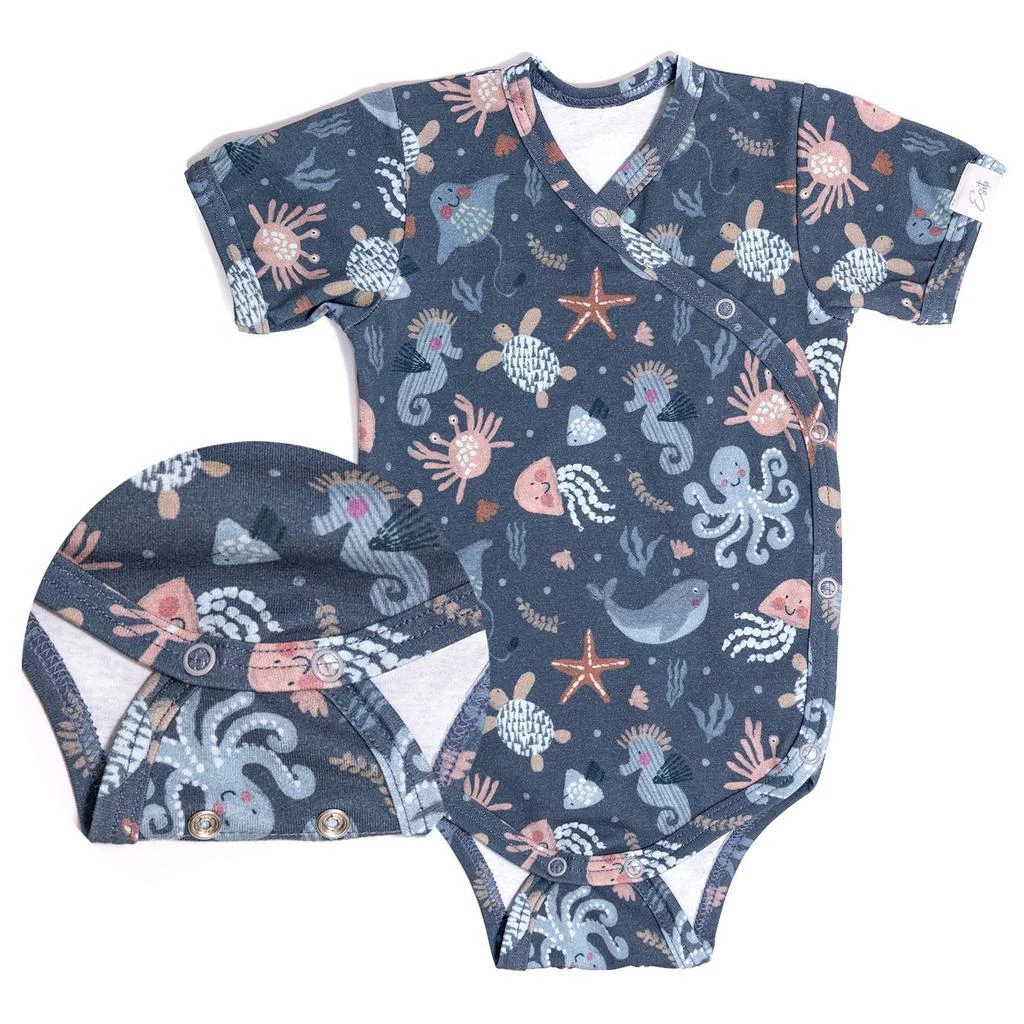 Rostoucí bodyčko zavinovací s krátkým rukávem Mořský svět šedé Esito