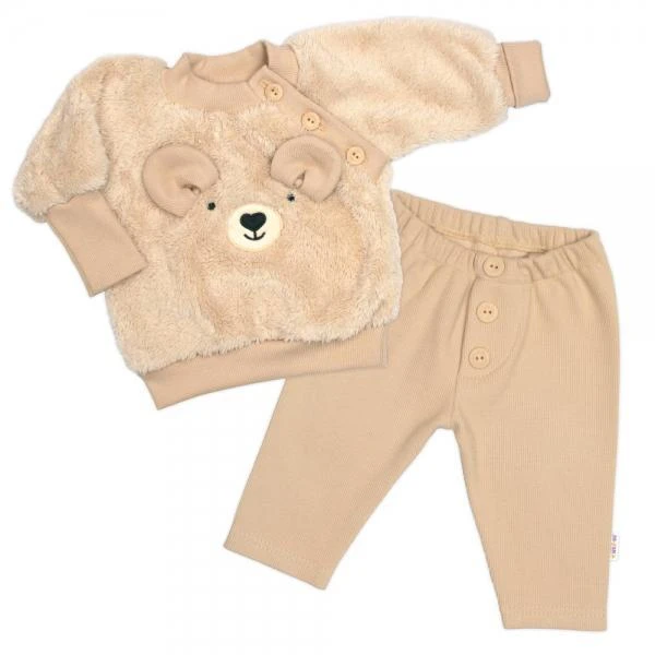 Rostoucí chlupáčková mikina a kalhoty Medvídek béžová 2dílná sada Baby Nellys