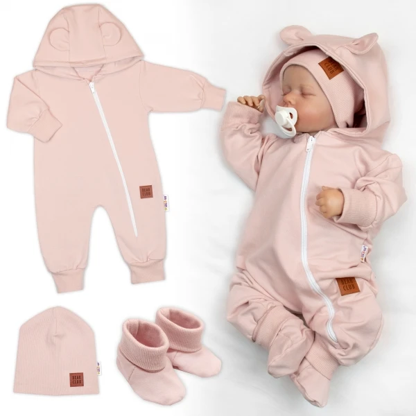Rostoucí teplákový overal, čepice, botky, 3D, Nature - růžová Baby Nellys