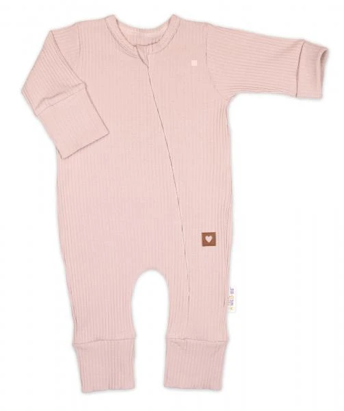 Rostoucí žebrovaný overálek, čepička a botičky Nature - růžová Baby Nellys