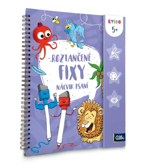 Každý sešit Roztančené fixy má 50 stran plných úkolů pro děti předškolního a mladšího školního věku. Kroužková vazba a zavírání na magnet je vhodné i do batůžku na cesty.