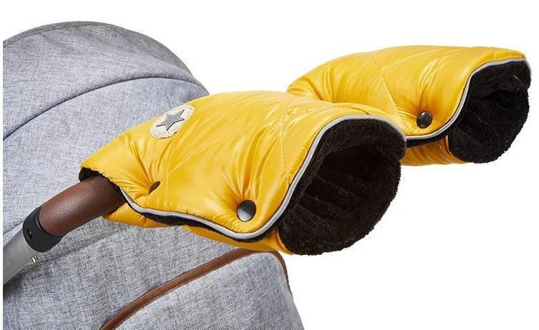 Balení obsahuje pár designových rukavic, které snadno upevníte na rukojeť kočáru pomocí druků. Rukavice lze použít na klasické kočárky, ale například i na golfky.