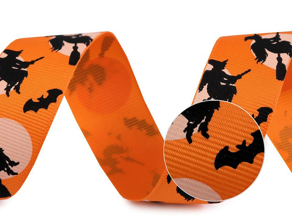 Použití: Stuhu využijete na halloweenské tvoření. Zajímavě s ní ozdobíte také karnevalové doplňky (klobouky, tašky apod.).