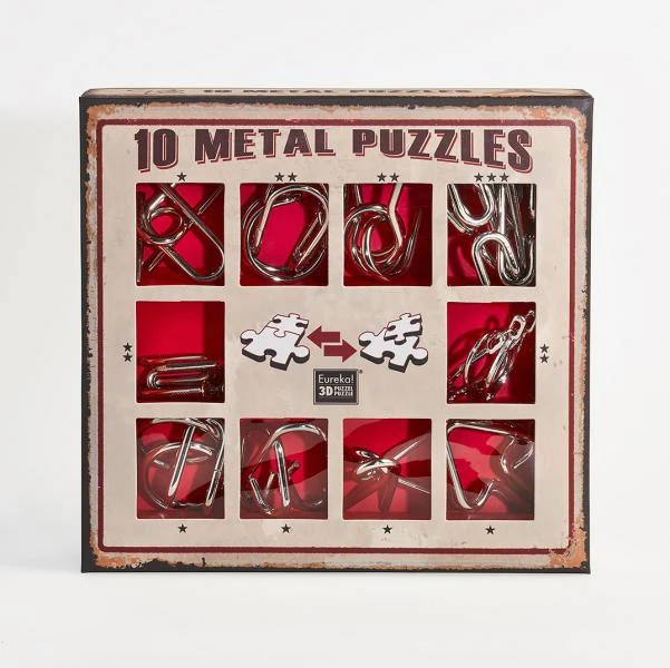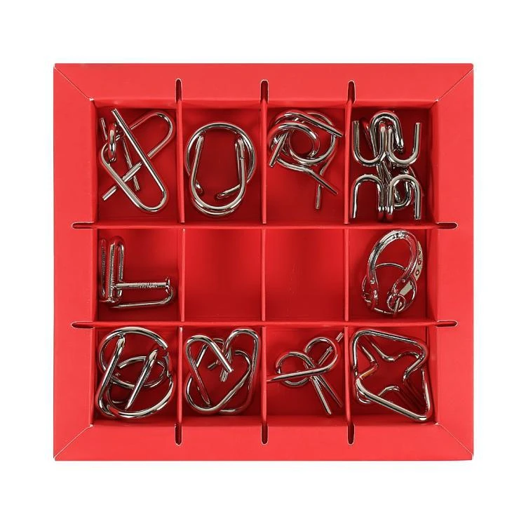 Sada 10 hlavolamů kov červená Albi