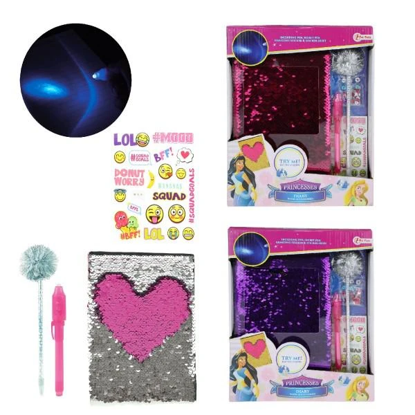 Krásný diář s měnícími flitry nesmí chybět ve výbavě žádné malé princezně. K diáři je navíc tužka, který umí svítit ve tmě.