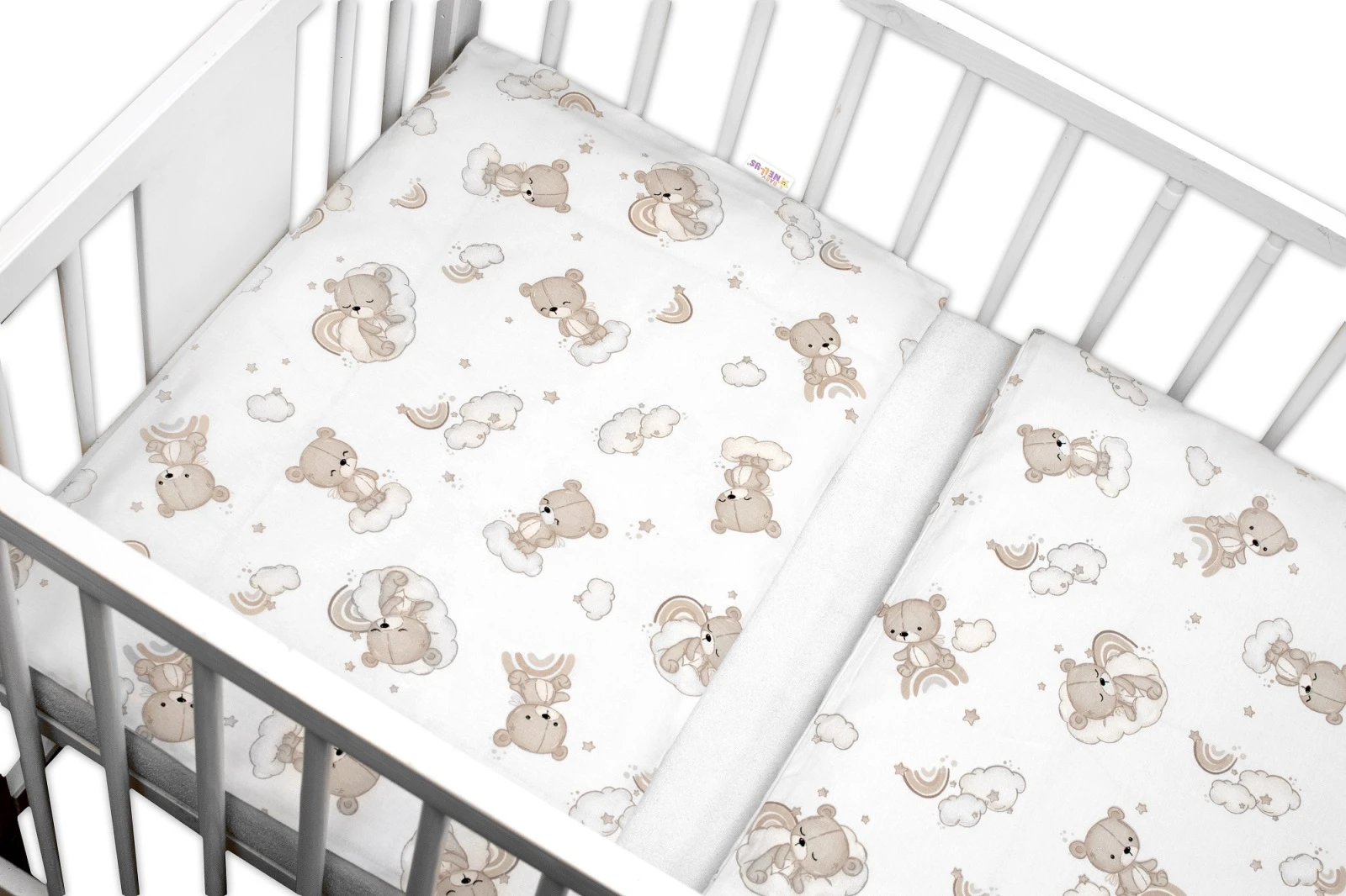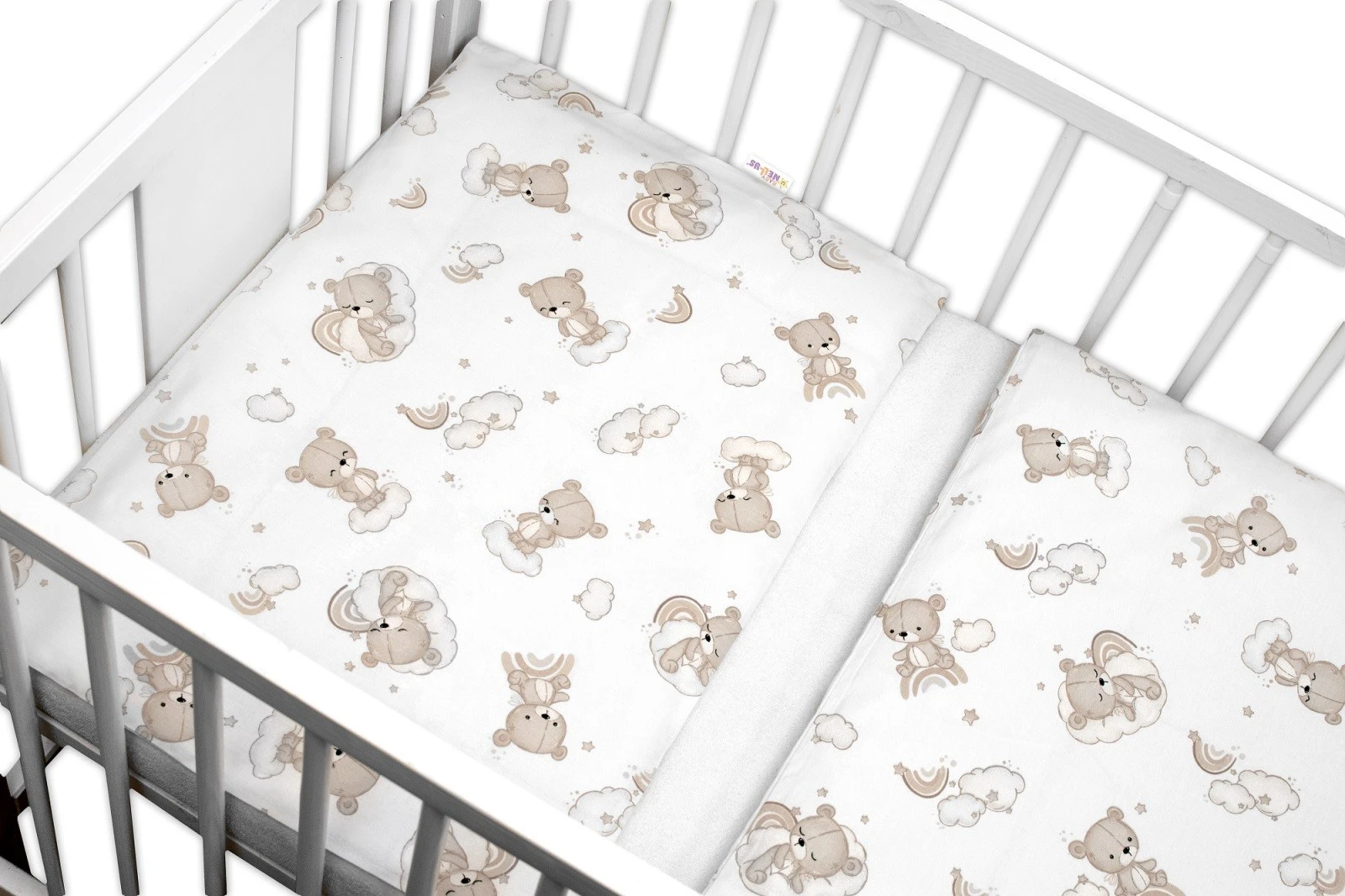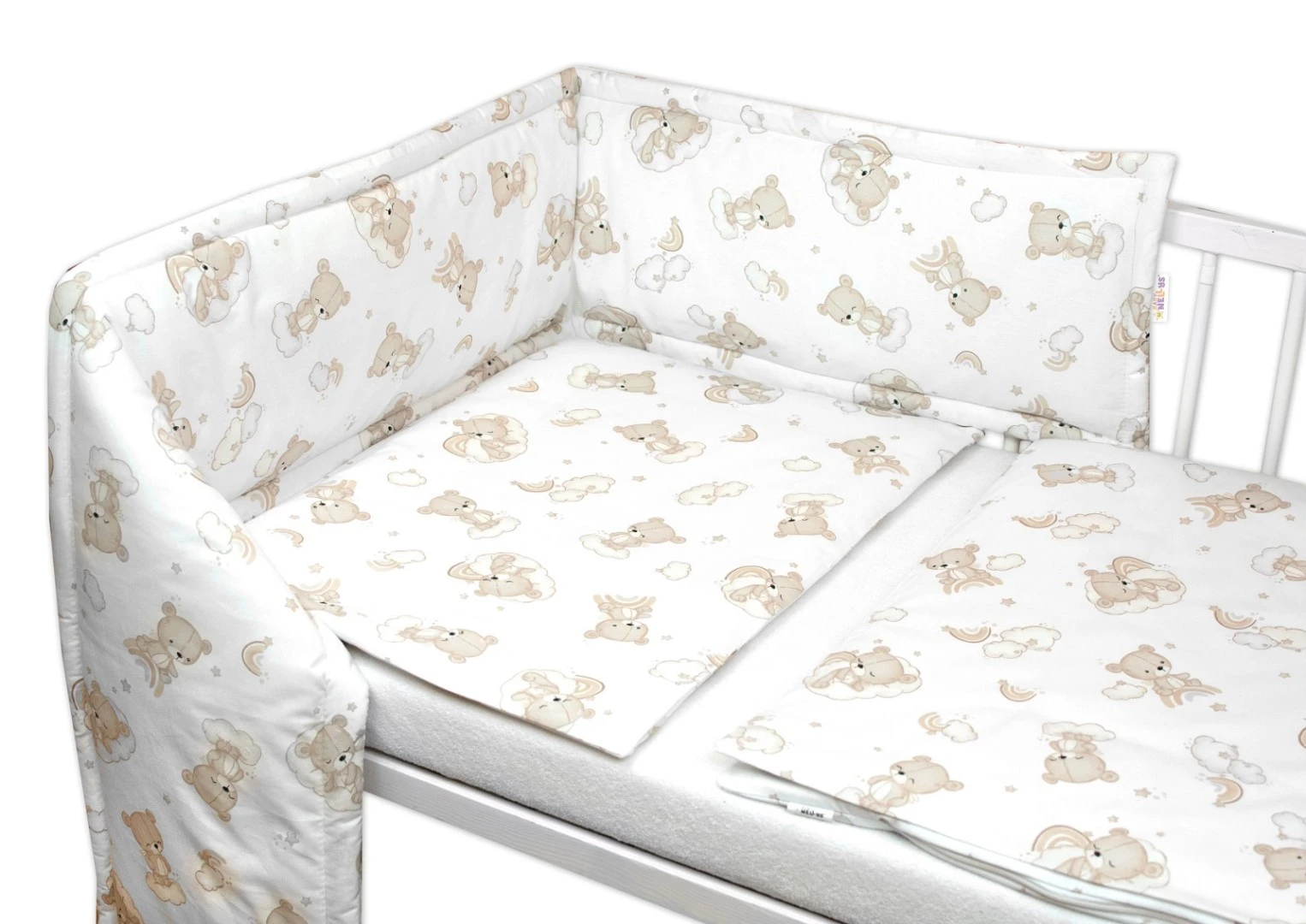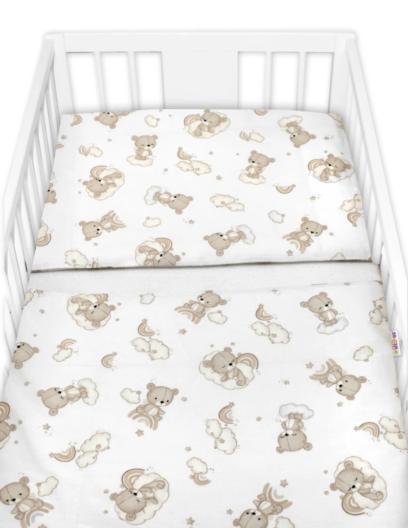 Sada do postýlky Mantinel s povlečením, 3D sada - Malý Medvídek, bílá/béžová Baby Nellys