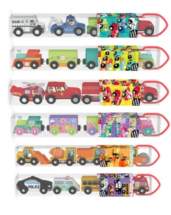 Hračka z přírodního dřeva. Stimulujte dětskou představivost, povzbuzuje roleplay a vyprávění příběhů. Tato sada přírodních dřevěných hraček obsahuje 4 vozidla. Výrobek pomáhá rozvíjet jemné motorické dovednosti a koordinaci ruka-oko při uchopení, držení a rolování auta tam a zpět.