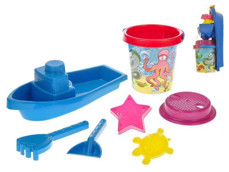 Sada na písek i pro ty nejmenší je v krásném pohádkovém provedení. Balení se skládá z celkem 7 částí, které zahrnují kyblík, lopatku, hrábě, sítko, bábovičku a loďku. Hračky jsou vyrobeny z kvalitního, zdravotně nezávadného plastu, který se vyznačuje vysokou odolností proti poškození. Děti si soupravu oblíbí především pro variabilitu jejího použítí. Hrát si s ní totiž mohou nejen doma, ale také venku na pískovišti nebo v bazénku s vodou.