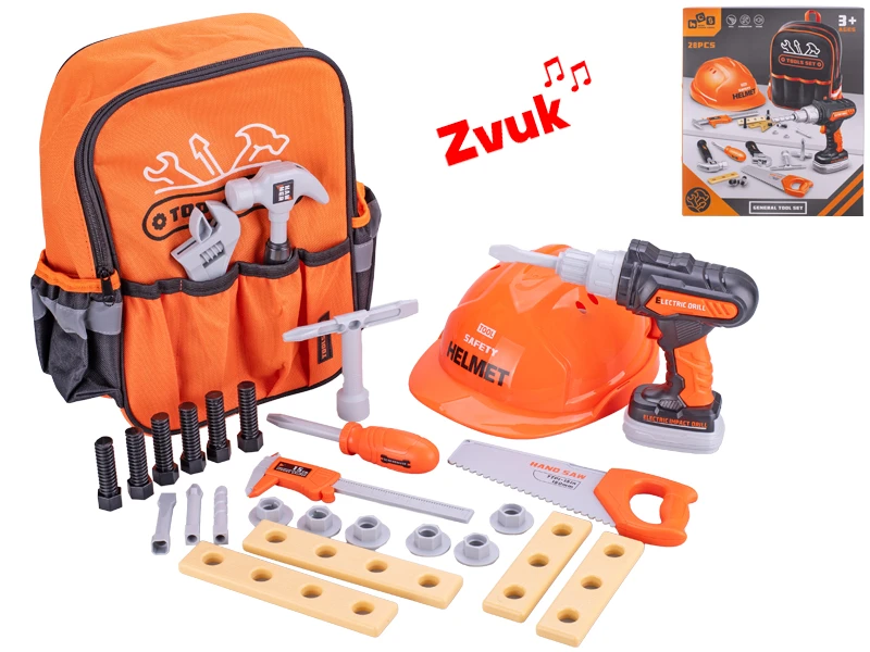 Sada nářadí s vrtačkou na baterie se zvukem s batůžkem a 28 ks doplňků