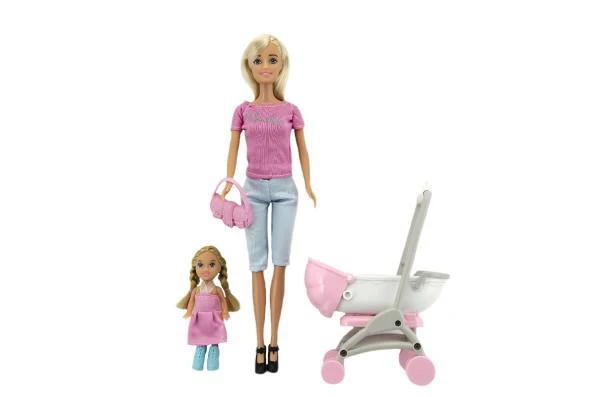 Sada panenka Anlily kloubová s holčičkou a kočárkem + doplňky