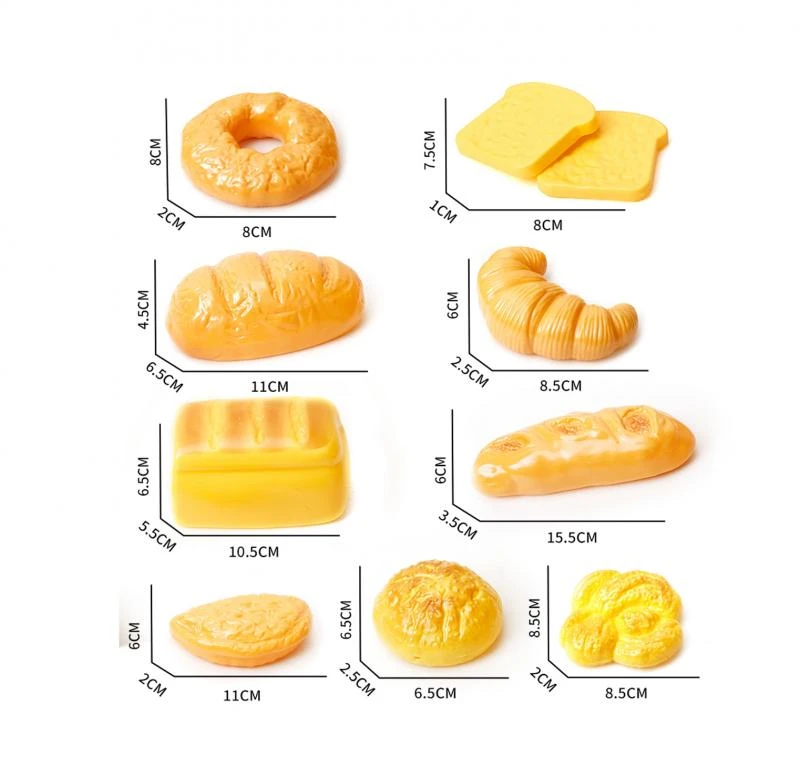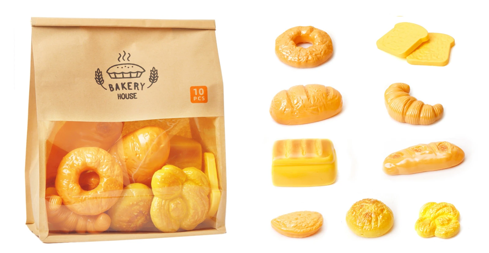 Různé druhy pečiva rozšiřují možnosti hry a umožňují dětem hrát si na různé situace (snídaně, svačina, návštěva pekárny).