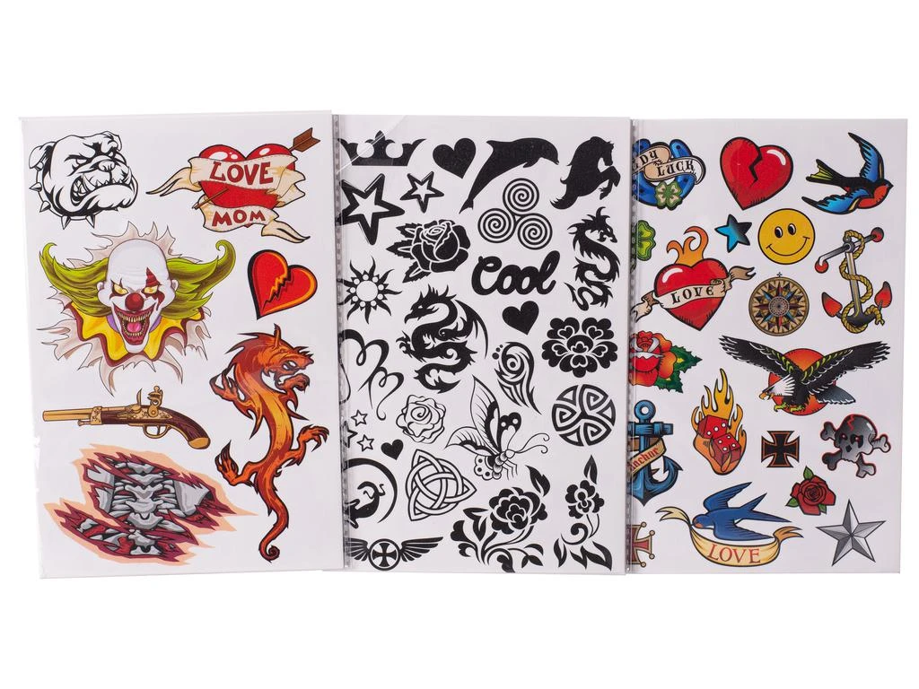 Sada tetování pro kluky 14 listů 200 motivů v krabičce