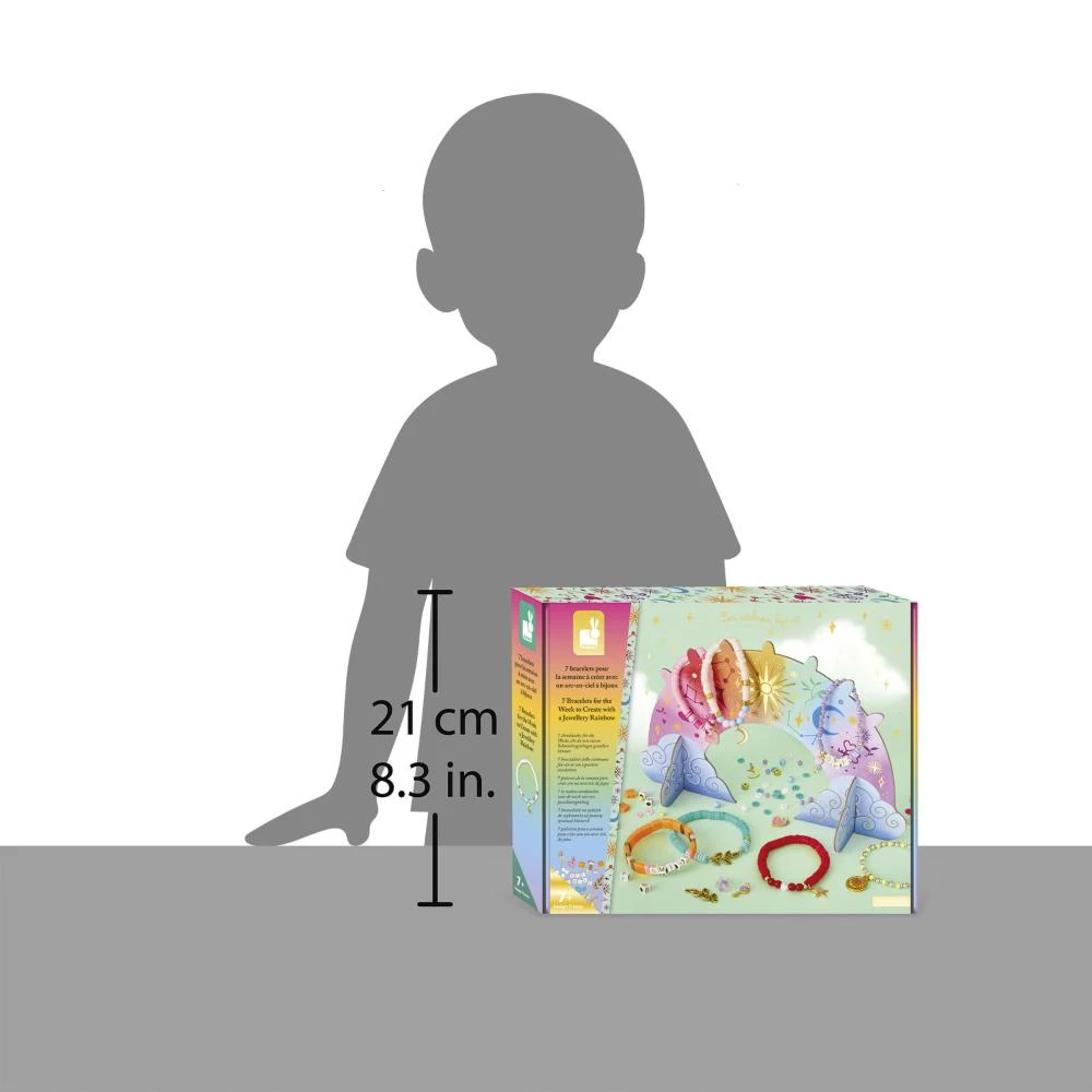 S touto sadou šperků si děti od 7 let mohou vyrobit 7 náramků a stojánek na jejich uložení. Každý den má svůj vlastní náramek, který je spojený s určitou barvou a energií. Stačí si ráno vybrat náramek podle energie, kterou právě potřebujete!