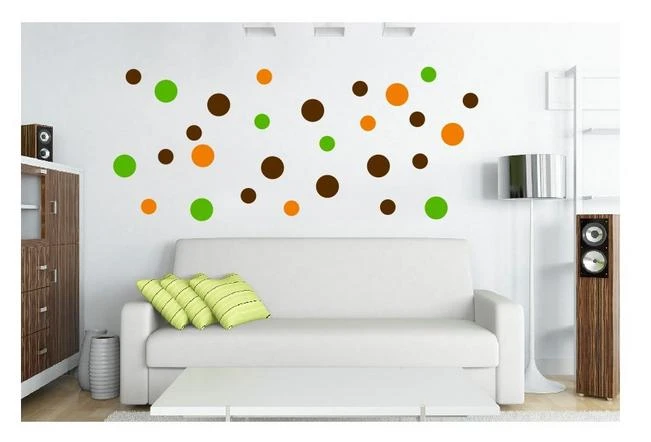 Svoji zeď můžete skvěle a originálně vyzdobit kombinací různých barev a velikostí puntíků, poskládat z nich různé obrazce nebo třeba tvar zvířátka do dětského pokoje. Puntíky z této matné fólie můžete lepit i na jiné hladké povrchy, na dveře, na nábytek, notebooky...