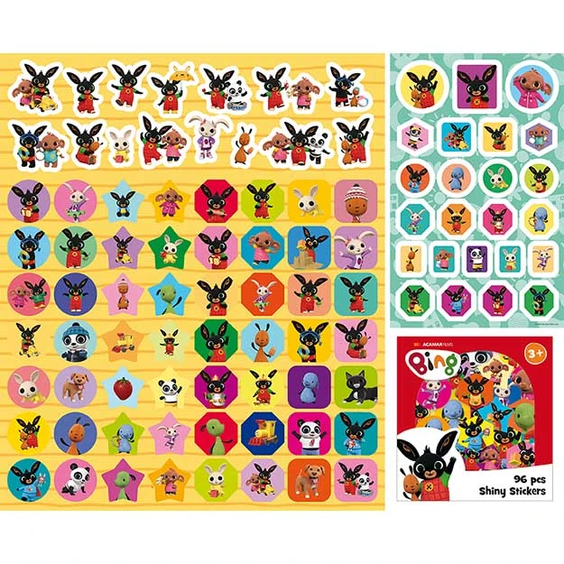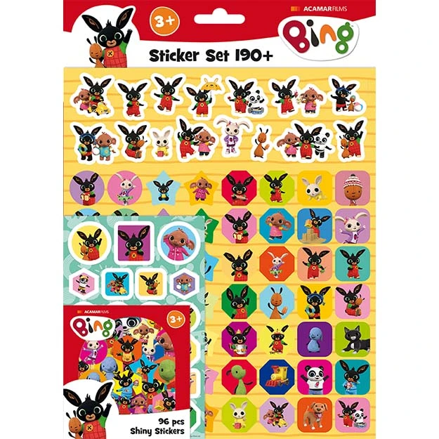 Set obsahuje velký list samolepek s blyštivým efektem, list papírových samolepek a sáček s malýmisamolepkami s blyštivým efektem.