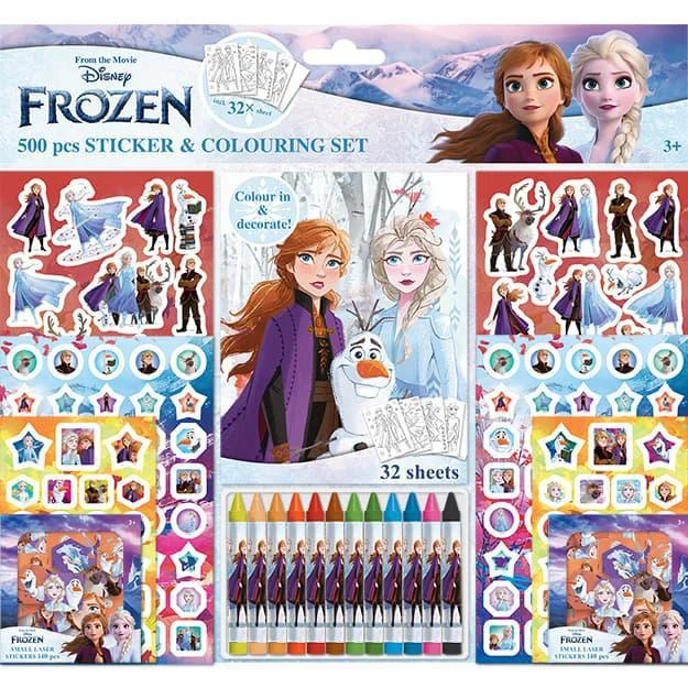 Samolepkový set s omalovánkami a voskovkami 500ks Ledové království