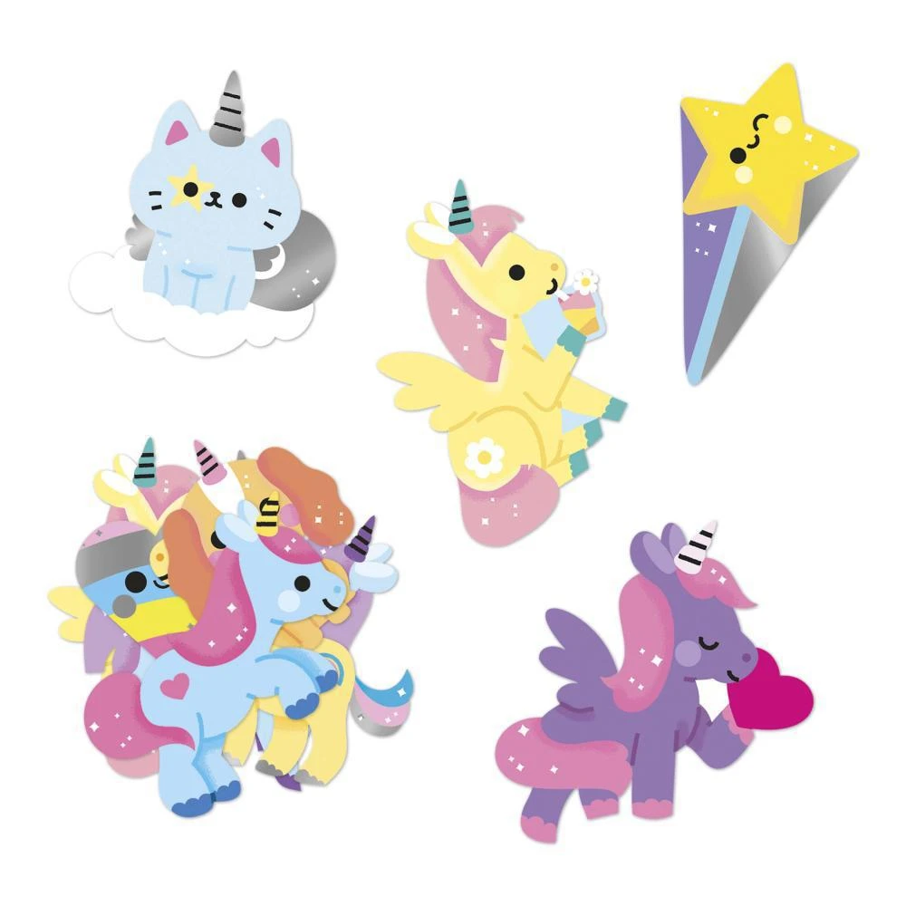 Chcete potěšit milovníky samolepek? Otevřete toto krásné balení ve tvaru jednorožce a objevte celý kouzelný svět plný hvězd, duhových motivů, roztomilých jednorožců a dalších zvířecích kamarádů!