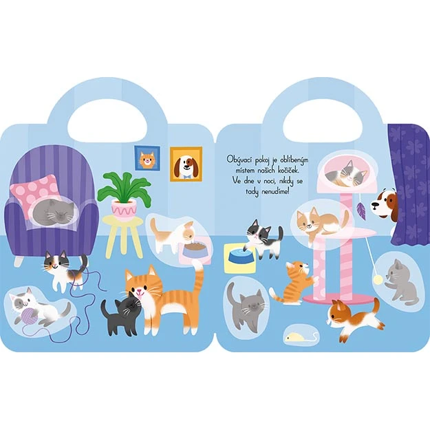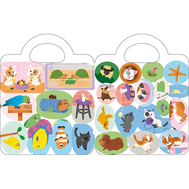 Samolepková knížka malého formátu obsahuje 12 barevných stran a více než 45 samolepek k dolepení a procvičení jemné motoriky nejmenších dětí.