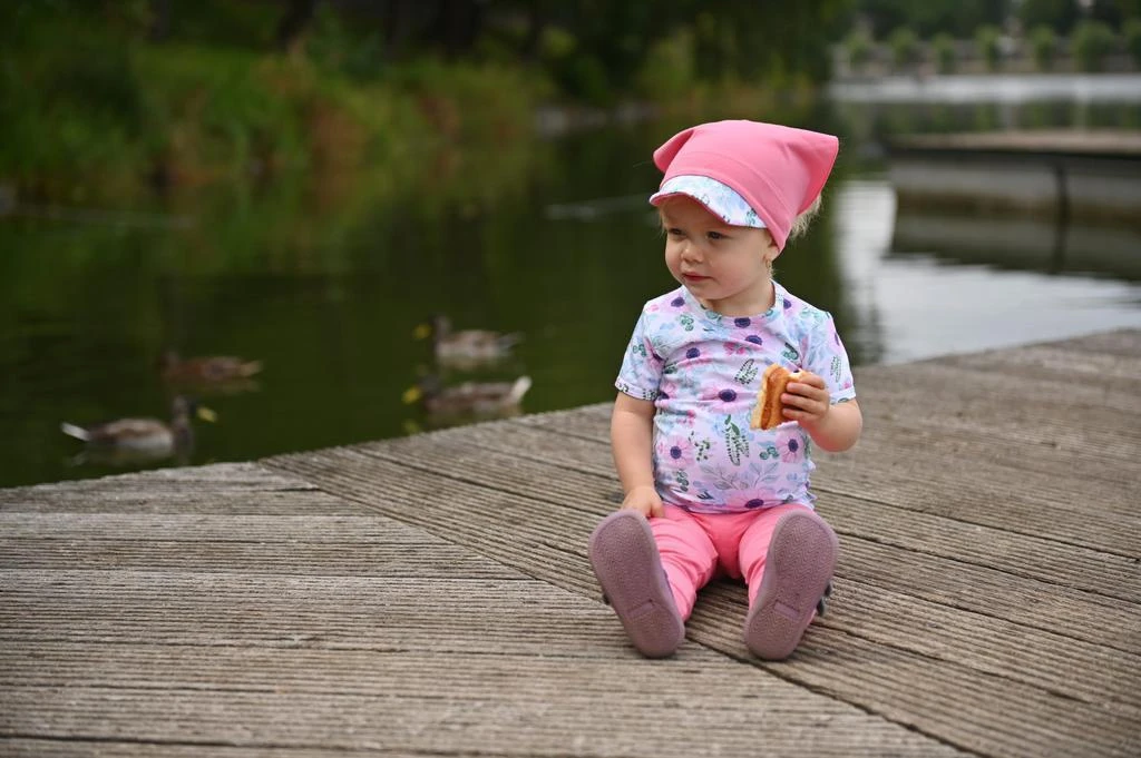 Materiál je vhodný i pro děti s problematickou pokožkou, ať už se jedná o alergiky, či děti s atopickým ekzémem. Nevyvolává alergické reakce a je odolný vůči plísním a bakteriím, snižuje riziko vzniku potniček. Na přání zákazníků jsme šátek doplnili o kšilt. Je určen pro jarní a letní období. Chrání hlavičku a ouška nejen před větrem, ale také před horkými slunečními paprsky.