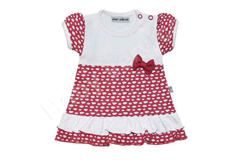 Bavlněné šatičky s krátkým rukávem Baby Service pro miminka s potiskem obláčků mají rozepínání na cvočky na ramínku