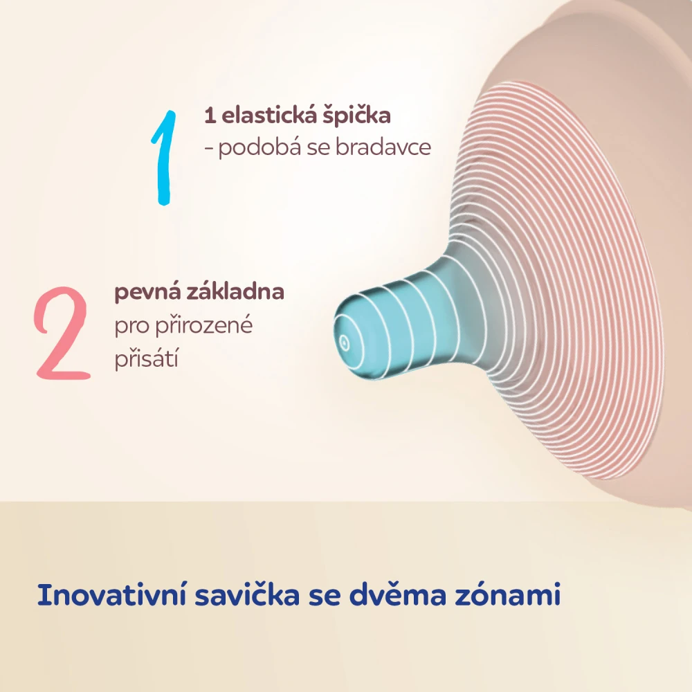 1. Flexibilní špička napodobuje přirozený pohyb matčiny bradavky během kojení.