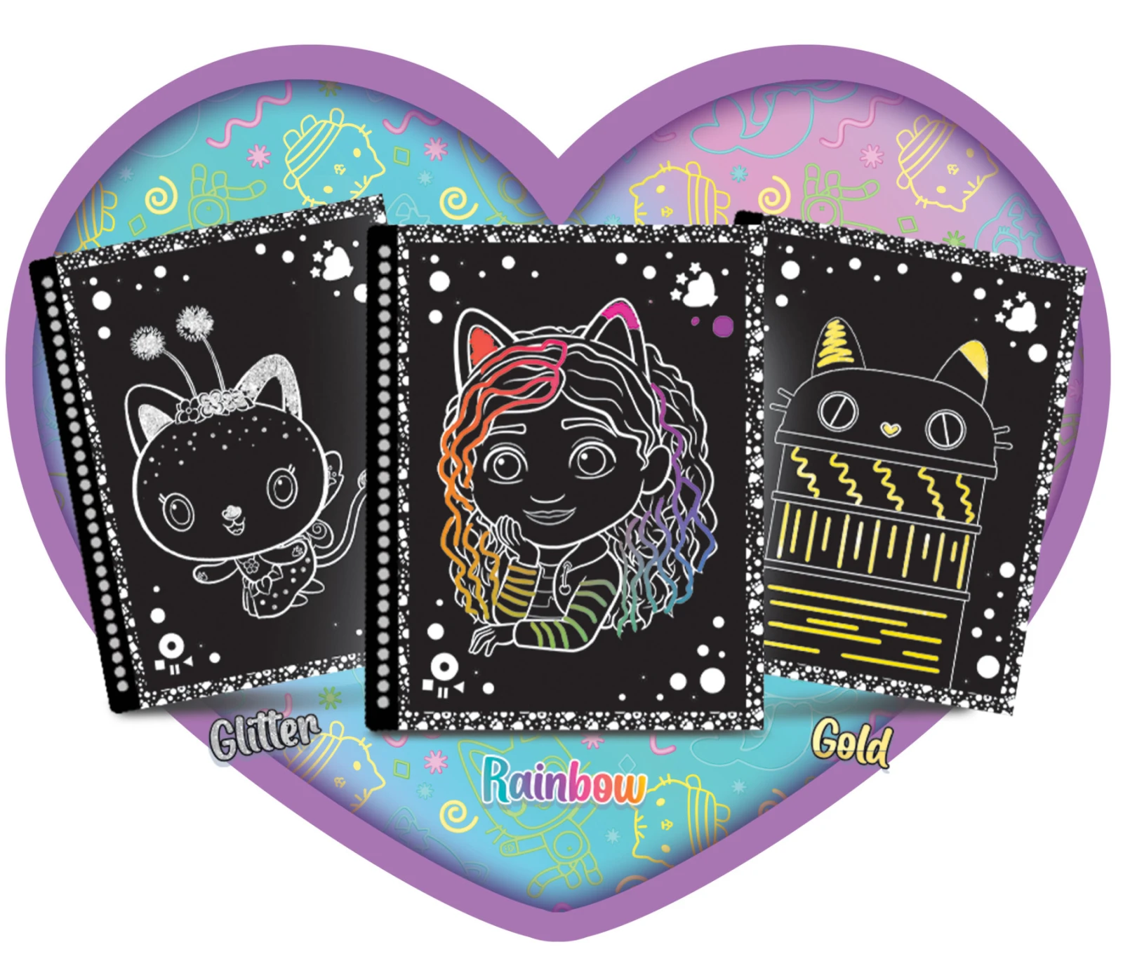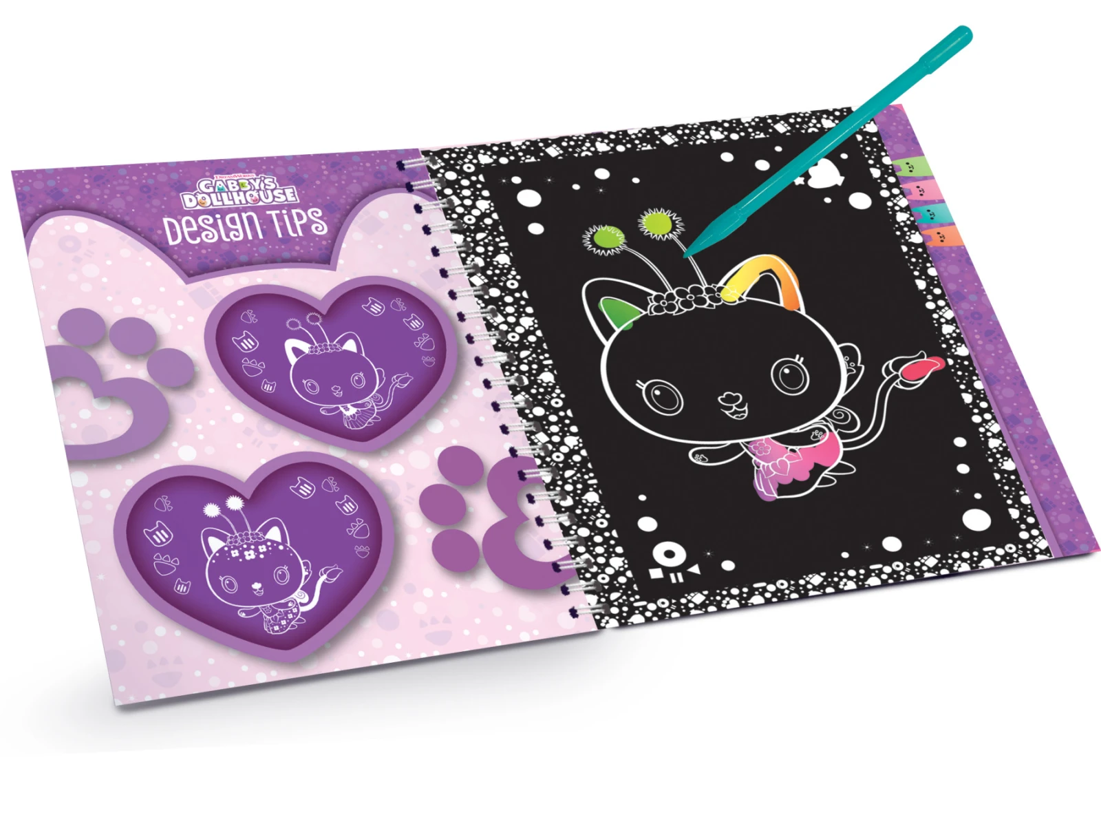 Objevte kouzlo barev s Gabby's scratch odhalením. Bavte se při vybarvování a zdobení všech obrázků seškrábáním černého povrchu a objevováním spousty jiskřivých a barevných efektů.