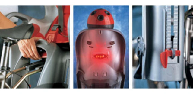 Zadní opěra má na zadní straně světlo se 4 svítícími diodami se 4 různými programy (baterie nejsou součástí). Sedadlo lze snadno vidět jak ve dne tak i v noci. Vodě a tepelně odolný povrch.Sedačku lze přizpůsobit velikosti dítěte - několik poloh popruhů a opěrek pro nohy. Sedačky OKBaby splňují nejpřísnější bezpečnostní normy TUV(evropská norma EN 14344)