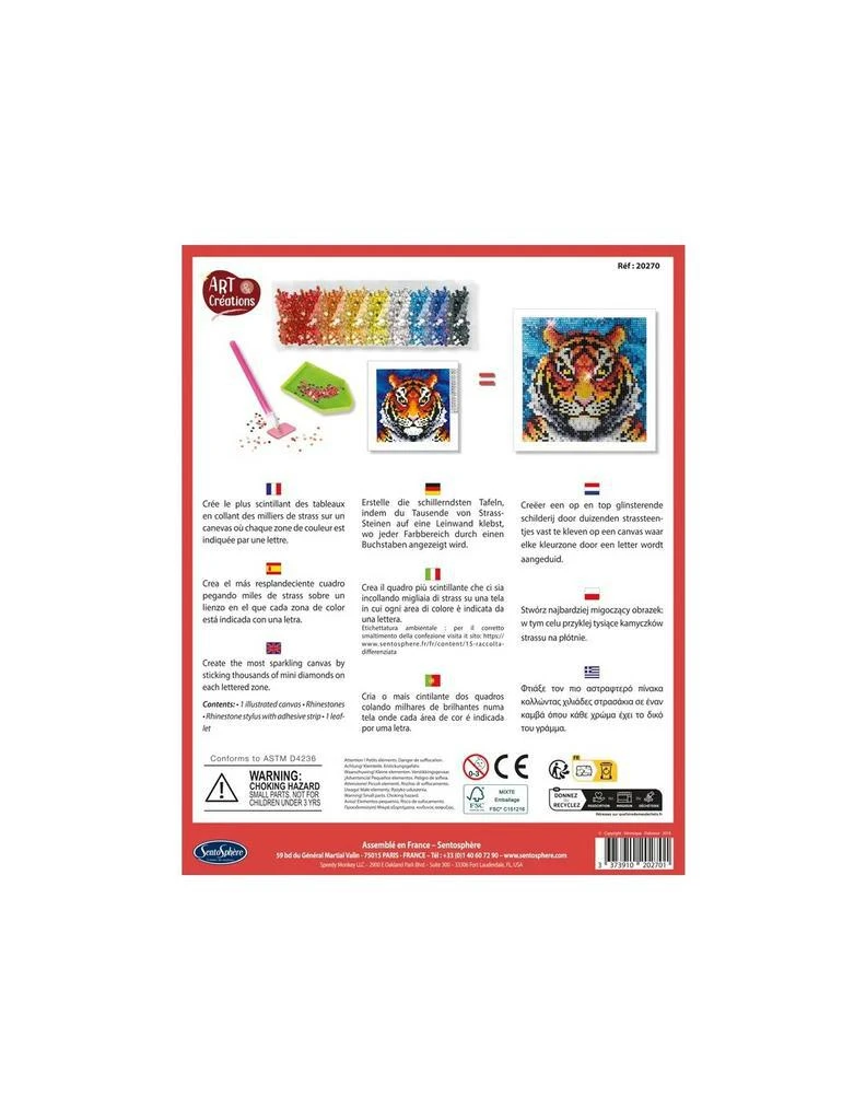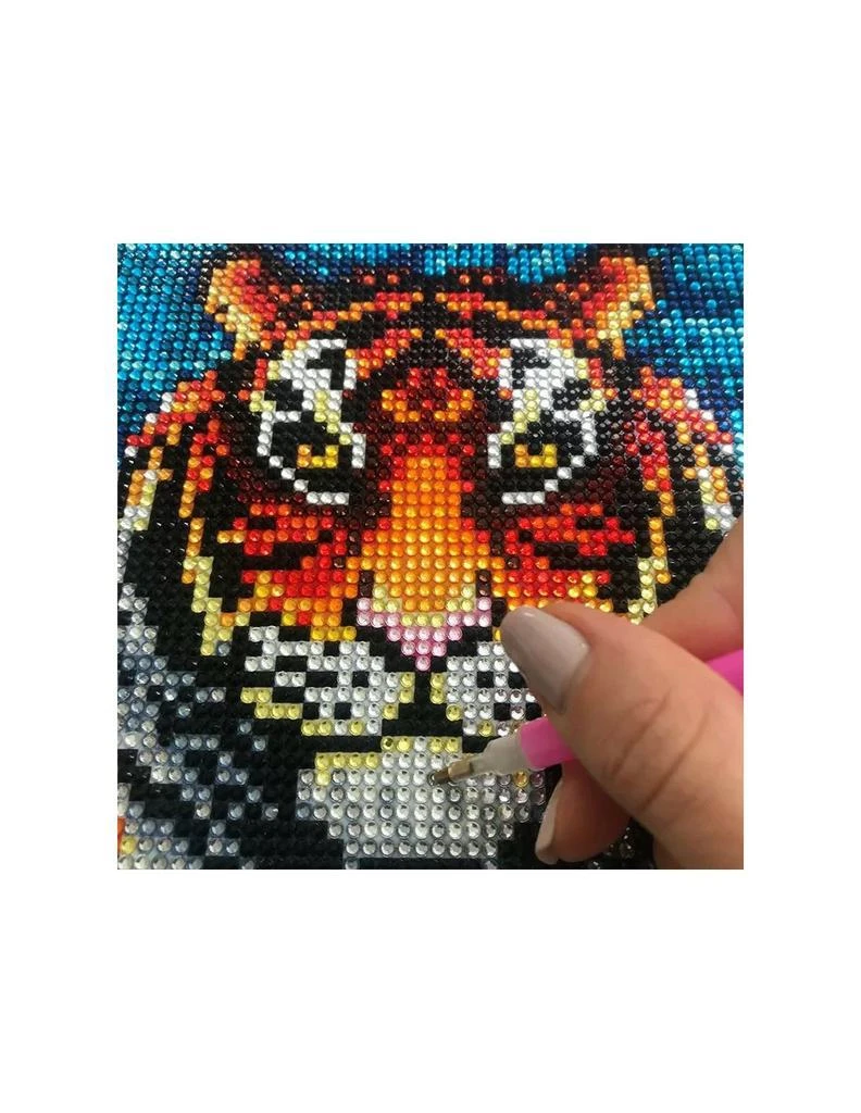 Vytvořte přepychového tygra přikládáním miniaturních diamantů na lepicí plochu. S každým přidaným diamantem odhalíte nádhernou ilustraci. Díky speciálnímu peru budete schopni zvednout každý jednotlivý diamant a přenést jej na lepicí plochu.