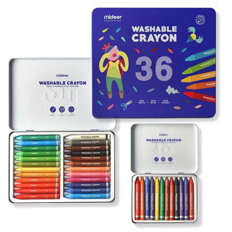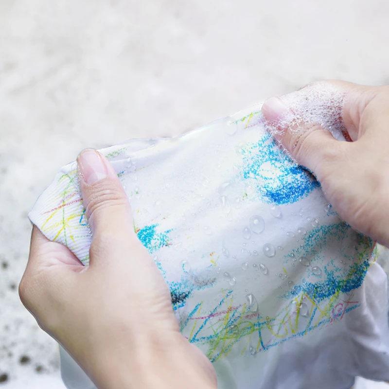 Voskovky jsou snadno omyvatelné. Kresby Vašeho dítěte lze jednoduše umýt vodou, v případě oblečení pak vyprat v pračce.