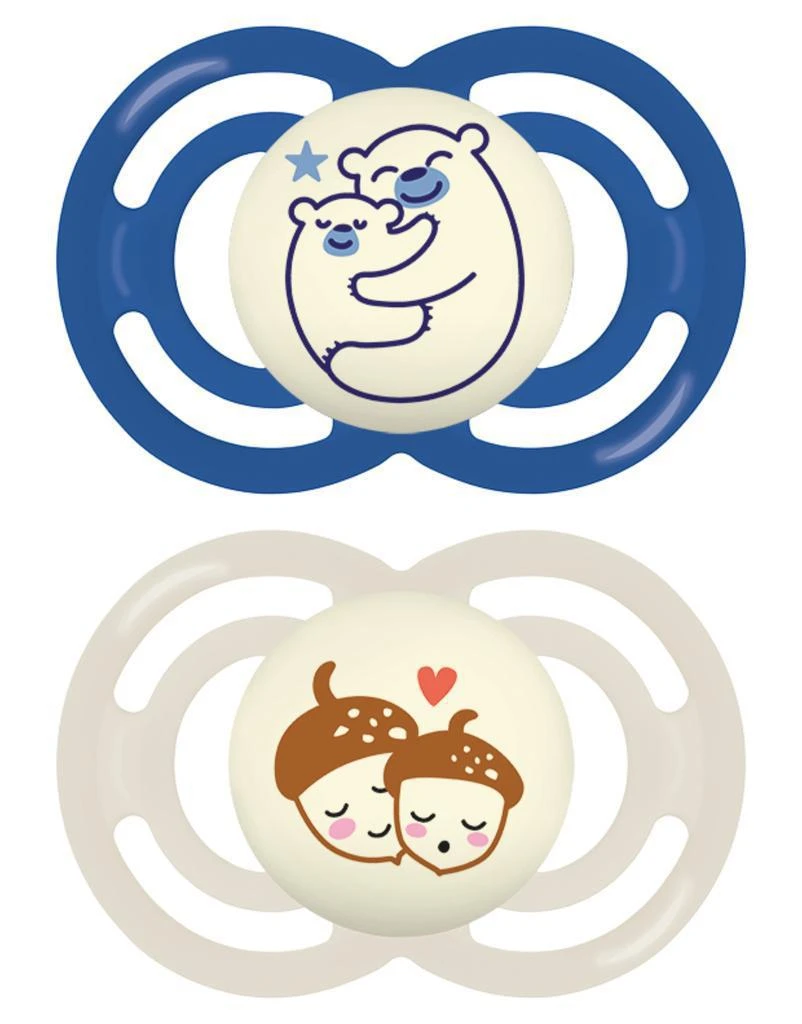 Dudlíky MAM Perfect Night jsou speciálně vyvinuty pro noční použití – knoflík dudlíku ve tmě svítí, takže ho rodiče i děti mohou snadno nalézt i v noci.