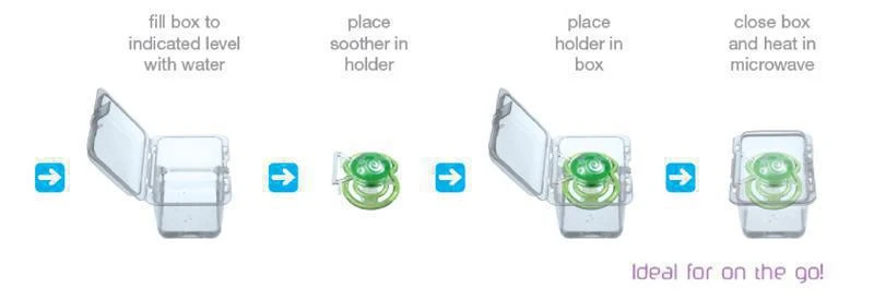 Baleno v praktickém boxu, který udržuje dudlík v čistotě a zároveň slouží pro jeho sterilizaci.