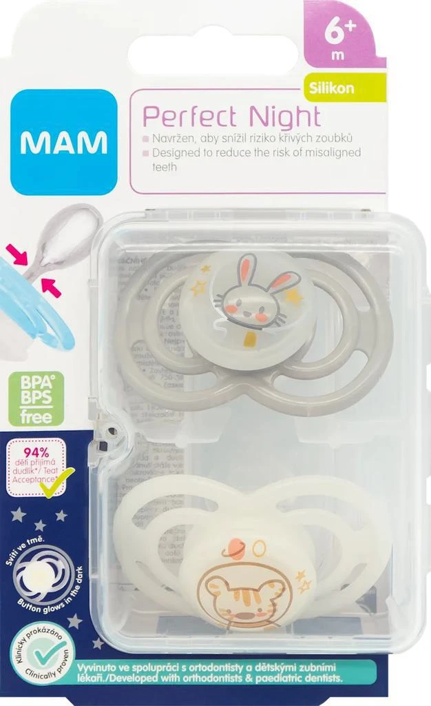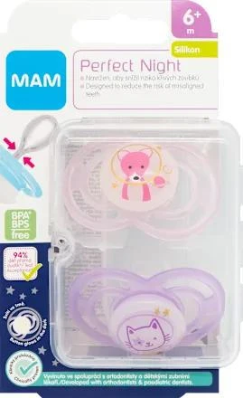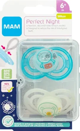 Šidítko Perfect Night silikon 6m+ MAM se sterilizačním boxem