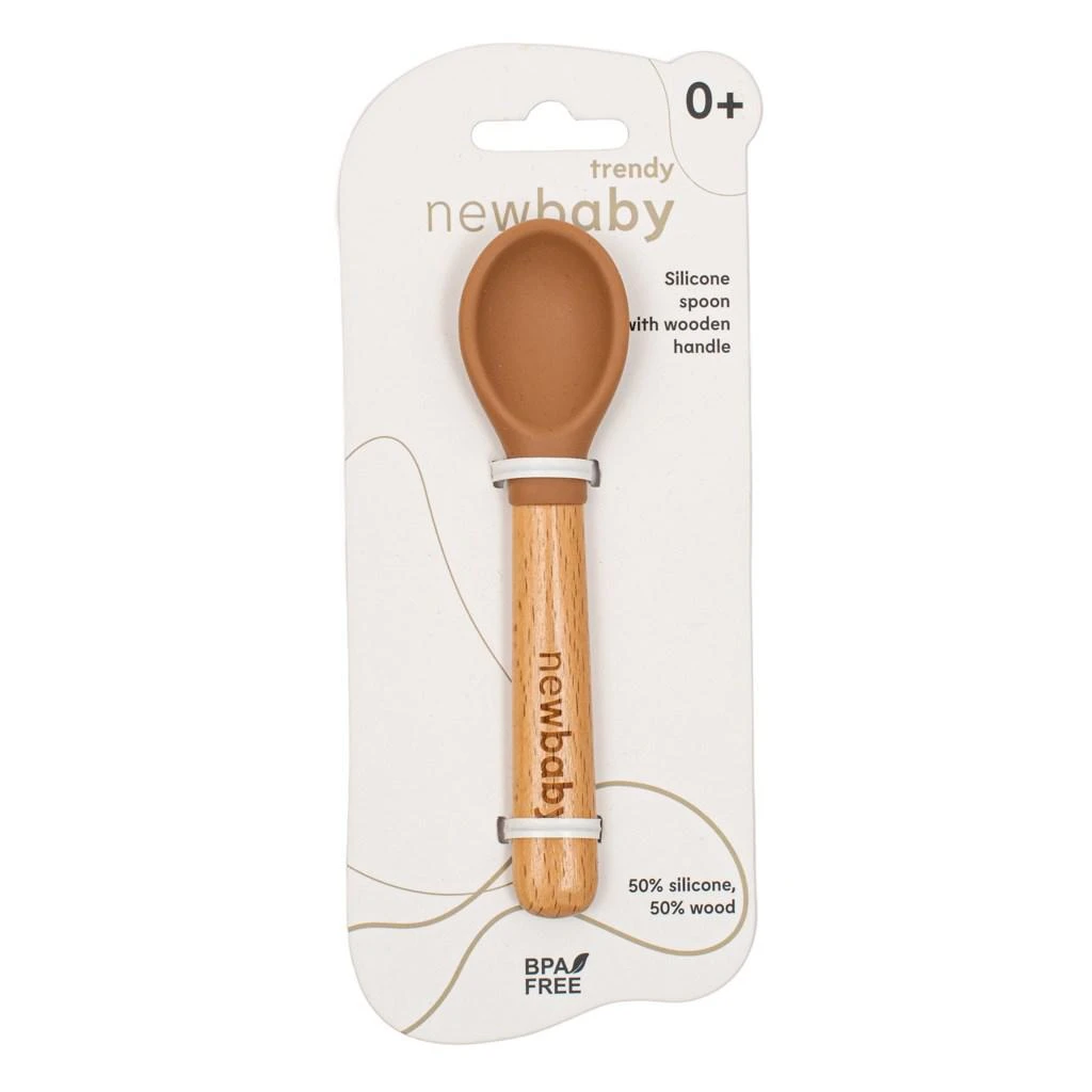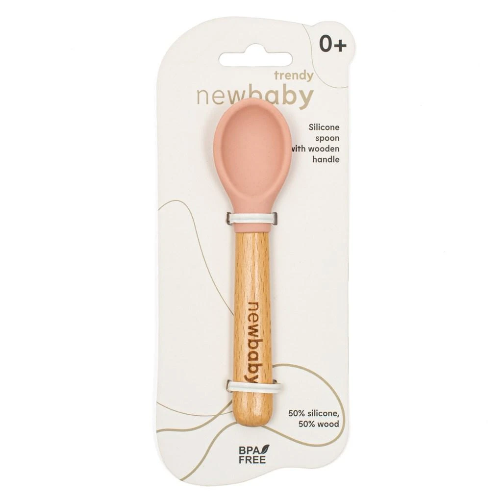 Silikonová lžička s dřevěnou rukojetí New Baby