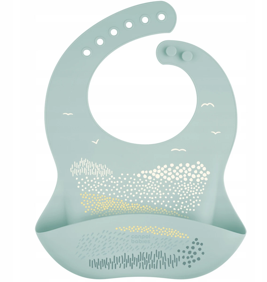 Bryndáček Canpol babies s kapsou má pohodlnou nastavitelnou sponu, takže velikost snadno přizpůsobíte krku vašeho dítěte.