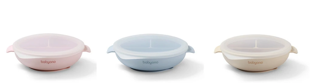 Tříkomorový silikonový talíř s přísavkou a víčkem je skvělým pomocníkem při zavádění pevné stravy, zejména při používání metody BLW (Baby Led Weaning).