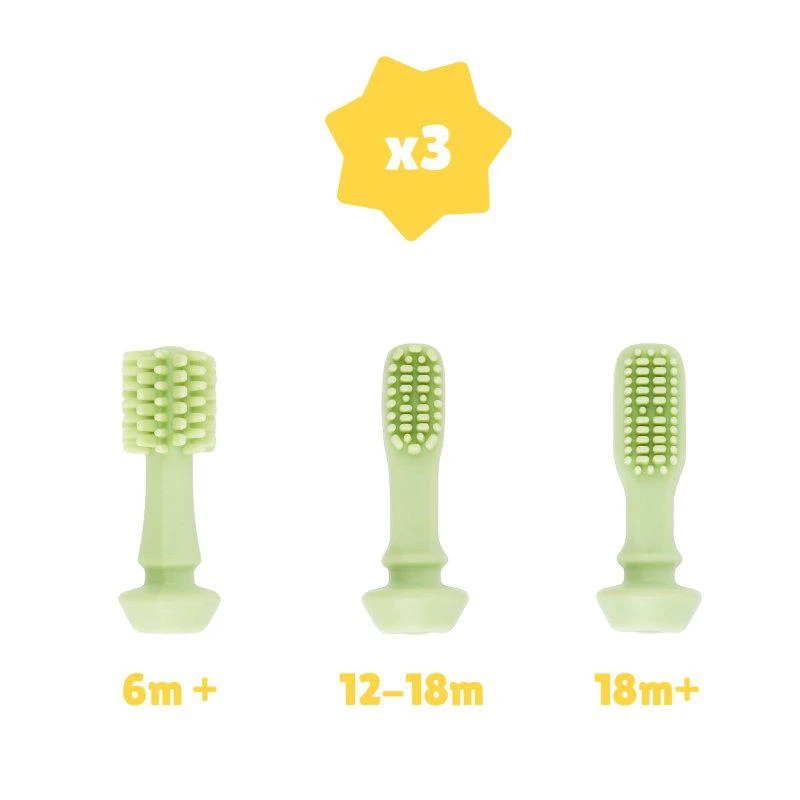- díky 3 různým nástavcům (6-12m / 12-18m / 18m+) jej lze přizpůsobit každé fázi prořezávání zoubků
