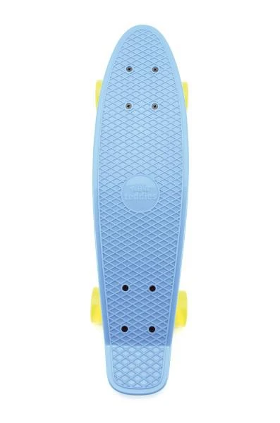Skateboard - pennyboard 60cm, nosnost 90kg, kovové osy, modrá barva, žlutá kola