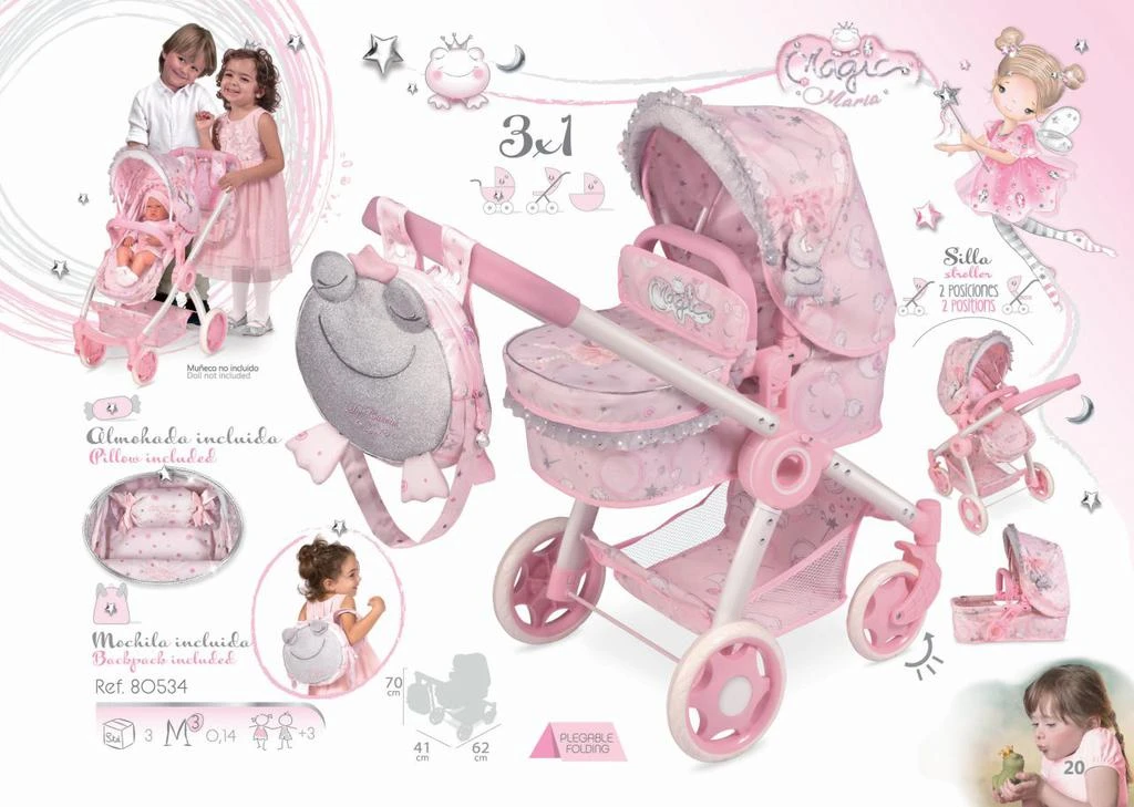 Skládací kočárek pro panenky 3 v 1 s batůžkem DeCuevas - Magic Maria