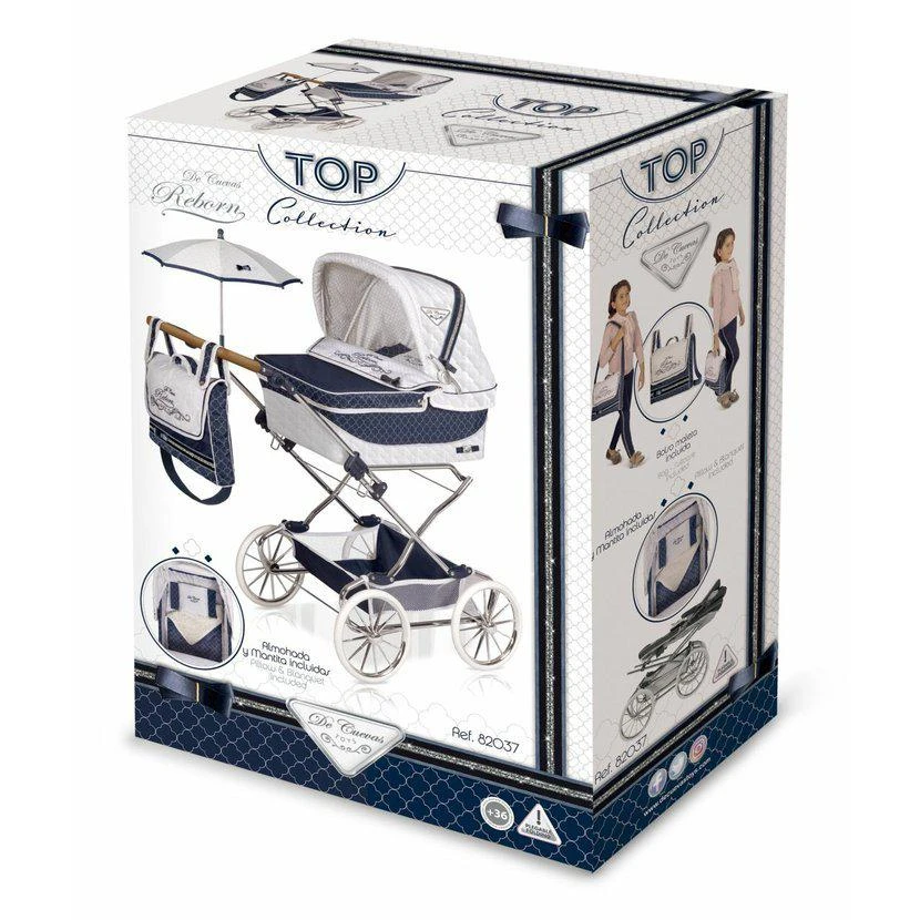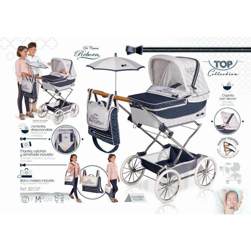 Skládací kočárek pro panenky REBORN se slunečníkem a doplňky TOP Collection DeCuevas