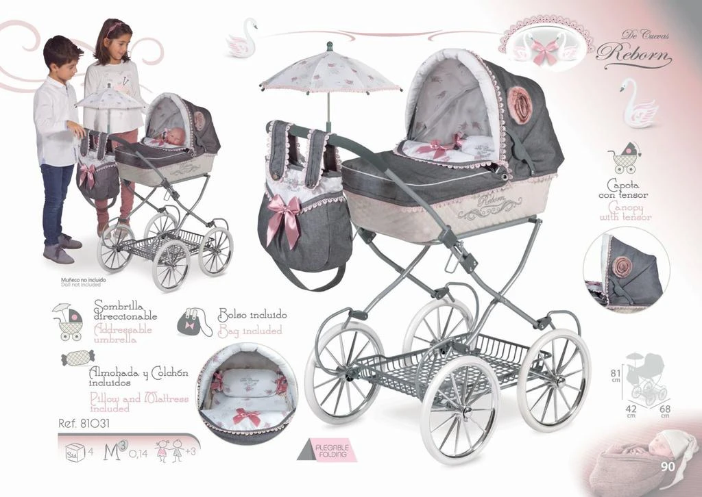 Skládací kočárek pro panenky s taškou a doplňky Reborn DeCuevas