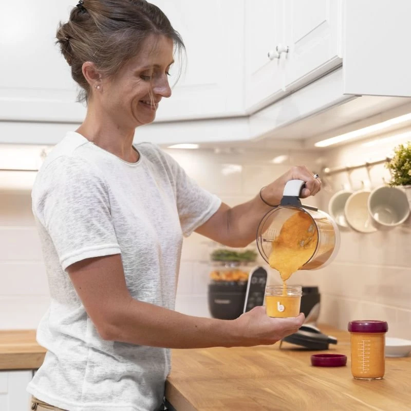 Babymoov skladovací misky mají objem 100ml a 220 ml. Mají víčko se šroubovacím uzávěrem a hermetickým, silikonovým těsněním. Na stěně misek je stupnice (v ml a v oz) a na vrchní straně víček je přepisovatelný povrch, kde si můžete jednoduše poznamenat uvařený pokrm a datum, kdy byl připraven.