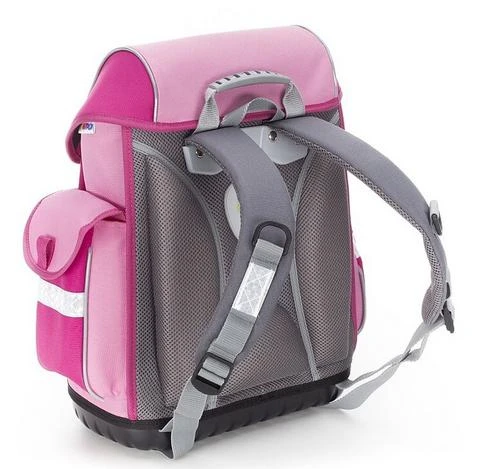 Vnitřní část školní aktovky je členěna variabilní všitou přepážkou na tři části. Tím je zajištěna větší efektivita pro vnitřní uspořádání jednotlivých školních pomůcek (sešitů, knih apod.) podle individuální potřeby žáka. Na předním dílu je našita dále velká kapsa rozměrů š.215 x h.50 x v.270mm. Její horní část kapsy se uzavírá pomocí popruhu se suchým zipem. Uvnitř kapsy je našita síťovaná kapsička na zip. Přes celou šířku přední kapsy jsou našity dva bezpečnostní reflexní pásky, dále pak potom i přes obě boční kapsy jeden a stejně tak na nosných řemenech. Aktovka je uzavřena prostorově tvarovanou klopnou přes celý svůj obvod, včetně přední kapsy. Tím je chráněn obsah aktovky před znehodnocením při deštivém počasí. Na vnitřní straně klopny je rozvrh hodin. Použité vnější textilní materiály (převážně PES) jsou opatřeny na povrchu vodoodpudivou impregnací. Klopna je zajištěna proti otevření kovovým aktovkovým zámkem s reflexní odrazkou. Zámek díky svému uchycení, lze jednoduše otevřít jednou rukou. Zadní část aktovky tvoří nově vyvinuté ergonomické polstrování ze speciální síťoviny s vetkanou PU pěnou, která zajišťuje optimální cirkulaci vzduchu v zádové části. Oba tyto faktory přispívají nejen k pohodlnému nošení aktovky, ale také zajišťují správné zatížení a vývoj páteřního systému. V horní části zádové části se ještě nachází textilní poutko pro zavěšení aktovky na lavici a ergonomické držadlo. Dolní část batohu je opatřena jednolitým plastovým dnem, které umožňuje dlouhodobé stání aktovky na mokré podložce, aniž by hrozilo znehodnocení jejího obsahu. Korpus aktovky je na každém boku osazen prostornou boční kapsou. Se síťovinou je určena na lahev s pitíčkem a s klopničkou na penál nebo svačinu.