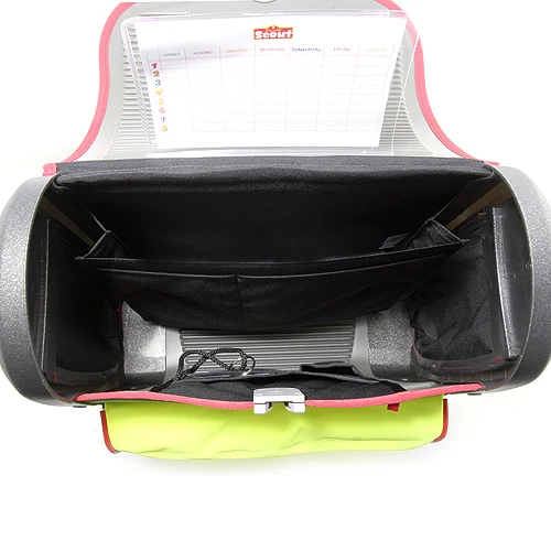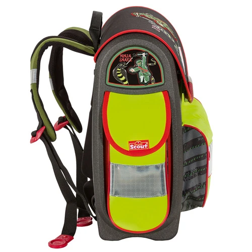 Aktovka Scout je speciálně vyvinuta s důrazem na bezpečnost dětí. Bohaté a unikátní reflexní prvky a fluorescenční povrchy svítí ve tmě a učiní školáka více viditelným i na větší vzdálenost. Unikátně tvarovaná klopna ochrání obsah aktovky před deštěm a speciální magnetické zapínání zajistí bezpečné uzavření aktovky a velmi jednoduchou manipulaci.