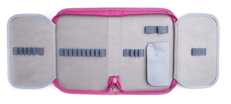 Školní jednoduchý penál se dvěmi klopami je určen pro žáky 1.stupně ZŠ. Uzavírá se na jeden samostatný zip. Má celkem 23 pružných gumových poutek pro uložení psacích potřeb. Dále je opatřen uzavíratelnou kapsičkou na suchý zip a na rubu obou klop průhlednou přihrádkou pro týdenní rozvrh se jmenovkou a pro rady spotřebitelům. Pouzdro má rozměr v uzavřeném stavu š.195 x v.35 x h.130mm. Prázdné váží 0,15kg (plněné 0,26kg).