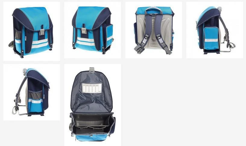 Vnitřní část školní aktovky tvoří jedna velká komora, která je v zádní části členěna variabilní pohyblivou přepážkou. Tím je zajištěna větší variabilita pro vnitřní uspořádání jednotlivých školních pomůcek (sešitů, knih apod.) podle individuální potřeby žáka. Na přední části vnitřní strany komory je našita ještě jedna kapsa velikosti formátu B5. Na předním dílu je našita velká kapsa rozměru š. 20 x h.5 x v.24cm. Její horní část kapsy se uzavírá pomocí popruhu se suchým zipem. Uvnitř kapsy je našita síťovaná kapsička na zip. Reflexní pásky jsou našity přes celou šířku přední kapsy, dále pak potom přes obě boční kapsy jeden a stejně tak jsou i na nosných řemenech. Batoh je uzavřen prostorově tvarovanou klopnou, která pevně obepíná celý obvod komory, včetně přední kapsy. Tím je chráněn obsah batohu před znehodnocením při deštivém počasí. K tomu přispívá i vodoodpudivá úprava použitých textilních materiálů (převážně PES/PAD). Na vnitřní straně klopny je rozvrh hodin se jmenovkou. Klopna je zajištěna proti otevření zámkem s reflexní odrazkou (reflektorem). Zámek jde jednoduše otevřít jednou rukou, když pod něj zasuneme dva prsty a palcem zatlačíme na reflektor s následným pohybem směrem nahoru. Zadní část aktovky tvoří nově vyvinuté ergonomické polstrování ze speciální síťoviny s vetkanou PUR pěnou, která zajišťuje optimální cirkulaci vzduchu v zádové části. Oba tyto faktory přispívají nejen k pohodlnému nošení aktovky, ale také zajišťují správné zatížení a vývoj páteřního systému. V horní části zádové části se ještě nachází textilní poutko pro zavěšení batohu na lavici a ergonomické držadlo. Jejich určení nezaměňovat! Dolní část batohu je opatřena jednolitým plastovým dnem, které umožňuje dlouhodobé stání batohu na mokré podložce, aniž by hrozilo znehodnocení jejího obsahu. Batoh je na každém boku osazen prostornou boční kapsou. Se síťovinou je určena na lahev s pitíčkem a s klopničkou na penál nebo svačinu. Společnost EMIPO, která tuto aktovku vyrábí, Vám nabízí kvalitní, extra lehký výrobek s pevnou konstrukcí, tříletou zárukou a doživotně bezplatným servisem.