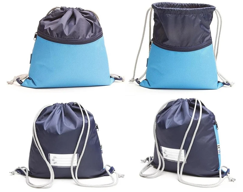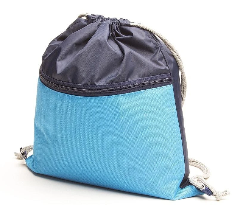 Je vyroben z kvalitních materiálů, uzavírá se utažením šedých šňůrek, které mohou plnit i funkci nosných popruhů a sáček se tak dá nosit i na zádech. Velmi praktická je i velká kapsa na zip přes celý přední díl. Nese značku Český výrobek. Sáčky jsou neodmyslitelným doplňkem školních aktovek a batohů.
